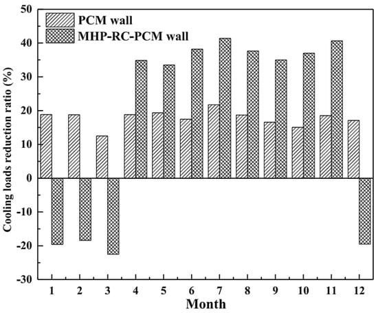 One way to reduce the amount of heat transmitted indoors during the summer is by using a PCM cool roof, as suggested by Jiang et al. []. The environmental and thermal aspects of three full-size rooms (PCM, PCMC, and Ordinary) were studied from July to September 2022. Experimental and numerical studies examined roof heat transmission and energy savings. With the PCMC roof, the real-time temperatures of the outside and inside of the roof decreased by 30.0 and 6.4 °C, respectively, and the flow of heat from the roof’s inside was reduced by 33.3% to 66.7%. Compared to other roof studies, the cooling advantages and energy savings were much higher. To evaluate the energy savings of PCMC roofs, a correlation study was conducted between seven parameters, following the mathematical model of roof heat transfer.