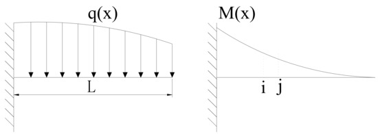 (1) Method 1: In continuous rigid frame bridges constructed with cantilevers, the bending moment at the root of the cantilever beam, induced by prestressed tendons tensioned in a specific section during cantilever construction, counterbalances the bending moment caused by the constant load at the root of the beam in that section [22]. The relevant theoretical analysis reveals that large-span continuous rigid frame bridges often feature variable cross-sectional forms, resulting in varying self-weight distributions along the beams. Figure 1 presents a diagram of the force and bending moment of the beam.