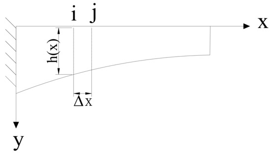 Assuming that the height of the cross-section beam varies by a second parabolic curve, the front view of the cantilever beam is shown in Figure 1.