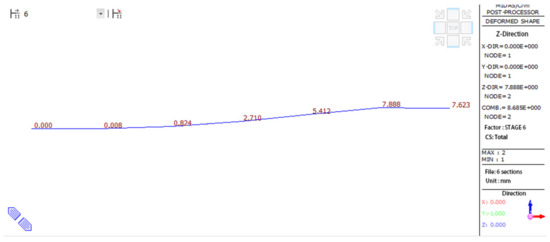 The result obtained from Equation (5) can be utilized in the finite element model to determine the maximum bending moment and cumulative displacement of the cantilever state for the beam configuration method.