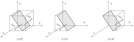 As shown in Figure 2, the probability that an environmental organization chooses to actively regulate is calculated as the volume of the Vy1 fraction, and the probability that it chooses not to actively regulate is calculated as the volume of the Vy2 fraction: