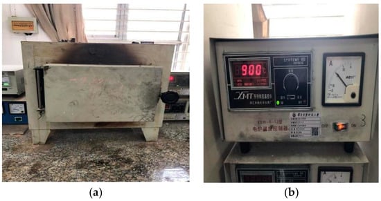 High-temperature test setup []. (a) High-temperature electric furnace. (b) Electric furnace temperature controller.