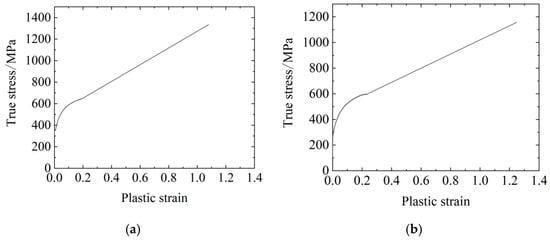 True stress–plastic strain curves of Q460D steel and ER55-G welds following exposure to 900 °C and subsequent natural cooling. (a) Q460D steel. (b) ER55-G welds.