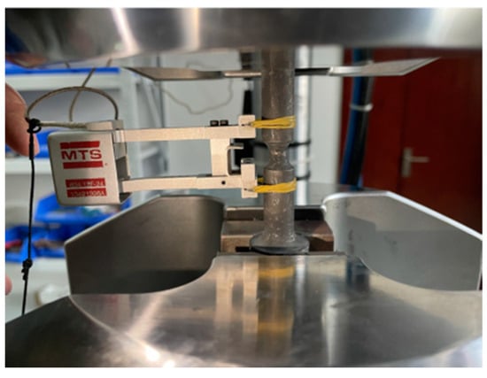 The ULCF loading test was performed on the cooled notched round bar specimen by using the MTS793 testing machine, as shown in Figure 8. An electronic strain extensometer with a gauge section length of 25 mm was utilized to measure the uniaxial strain of the specimen.