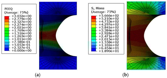 The force–deformation curves of each specimen obtained from the experiment, as depicted in Figure 10 and Figure 11, showed a sudden change in slope at a specific moment during the final tensile cycle, and this was considered as the point corresponding to the initiation of ductile fracture under cyclic loading. It can be observed from Figure 10 and Figure 11 that the maximum compressive force was higher than the maximum tensile force during the cyclic loading. The deformation was recorded for use in the FEA.