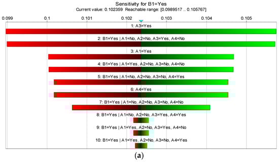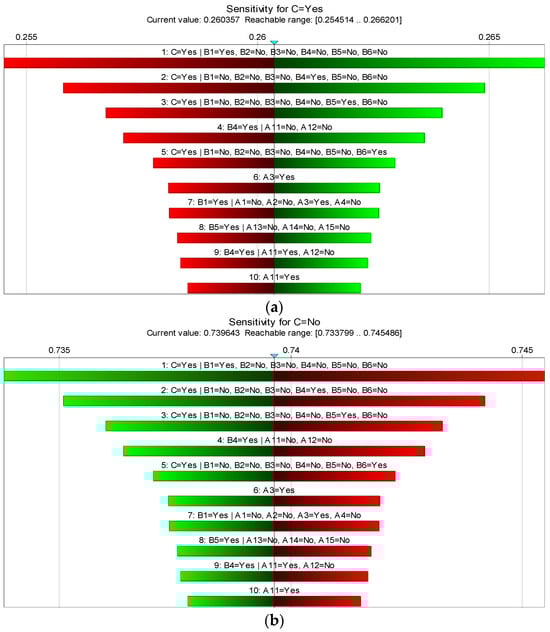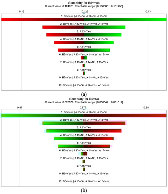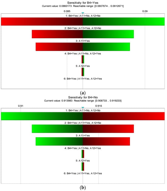 Sensitivity analysis of “environmental risk ”: (a) in the “yes” state; (b) in the “no” state.