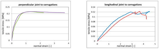 - The tensile specimens showed an average tensile strength of 0.13 MPa for the longitudinal arrangement and of 0.19 MPa for the perpendicular arrangement. A lower value than expected was achieved due to the combination of tensile load and peeling.