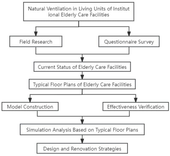 As China transitions into a deeply aging society, the elderly population’s growth has driven a rapid increase in elderly care institutions and facilities during the “13th Five-Year Plan” period, rising by over 235% compared to the “12th Five-Year Plan”. The ongoing normalization of COVID-19 prevention measures has underscored the urgent need to improve natural ventilation in elderly care residential facilities. This study conducted empirical surveys to assess the current state of natural ventilation in typical elderly care facilities and analyzed the architectural elements influencing it. By examining the needs and preferences of the elderly for natural ventilation, two basic living space layout types were identified through typological analysis. Suitable CFD simulation software was then employed to model key elements, and effective methods to enhance ventilation were summarized. This study found that modifying the floor plan to reduce the depth of south-facing rooms to 8.4 m, relocating external openings to the center of the rooms, adjusting the ratio of ventilation openings to room area to greater than 1/12, and adding 0.5 m high windows facing internal traffic roads can significantly improve indoor ventilation while maintaining privacy. Furthermore, placing the main activity and resting areas of the elderly in well-ventilated zones with minimal drafts can enhance both comfort and ventilation effectiveness. The research provides a scientific basis and methodological guidance for the construction and renovation of elderly care residential facilities.