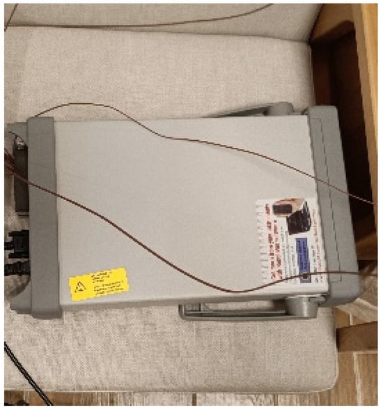 - Agilent analyzer (main unit 34970A, modules 34901A, T-type copper–copper nickel thermocouples) for measuring the temperature of the building envelope and lighting surfaces (Figure 8), recording every minute;