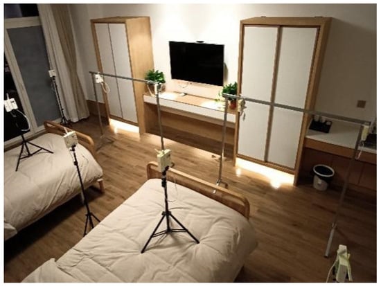 To accommodate the elderly’s living habits, doors and windows were half-open from 7:30 to 21:00 and closed the rest of the time, with the balcony door always open. The lights and TV were on from 19:30 to 21:00. The measuring instruments included the following: