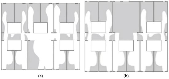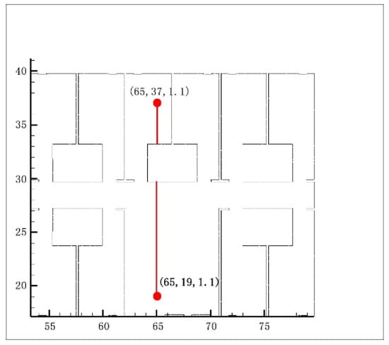 In the north-side public living room type, as the living room was located on the north side (Figure 23), the ventilation effect of the semi-open part was improved, but some areas experienced a decrease; hence, an open design was chosen. To ensure ventilation, the living room also adopted a symmetrical triptych window design. Like the south-side living room type, a door-to-door streamline was used. In terms of bedroom design, the depths of the rooms on both the south and north sides were reduced to meet the ventilation needs of the rooms and the north-side activity room, with the bathrooms also located internally. The window sill height was set at 0.9 m to ensure north-side ventilation; external openings on both sides were merged, and high windows were installed on the doors of the internal corridor openings. Specifically, the room depths on both the south and north sides were 8.4 m, the external openings were 1.6 m × 2 m, and the bathroom dimensions were 1.6 m × 2.7 m; the north-side living activity room had three symmetrical windows, with window dimensions of 1.8 m × 1.5 m and a window sill height of 0.9 m. Simulation validation of the design plan showed that the air age non-compliant area was significantly reduced compared to the typical floor plan, proving the effectiveness and reliability of the new scheme.