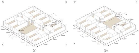 Three-dimensional model of south-side public living room type. (a) Open public living room. (b) Semi-open public living room.