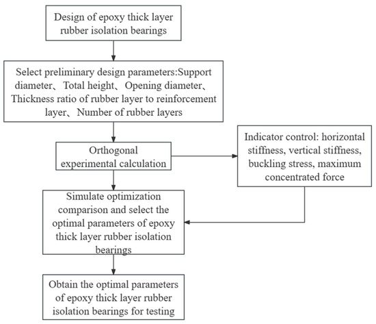 Design process diagram of epoxy thick layer rubber isolation bearings.