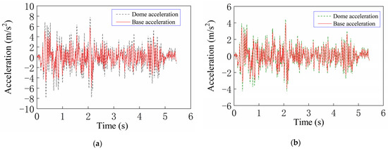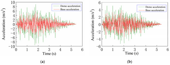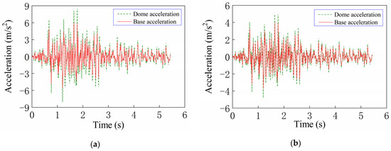 Structural acceleration response under the EL-Centro wave. (a) X-direction acceleration response; (b) Z-direction acceleration response.