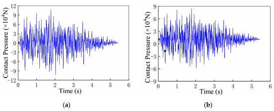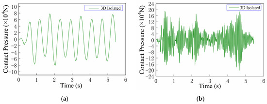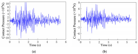 Structural base reaction under Taft wave. (a) X-direction base reaction force; (b) Z-direction base reaction force.