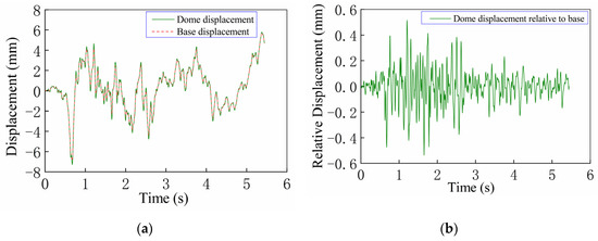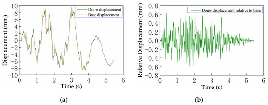 | Type | Peak Value at the Bottom of the Upper Structure (mm) | Peak Displacement of Upper Structure Dome (mm) | Peak Relative Displacement of Upper Structure Dome (mm) |