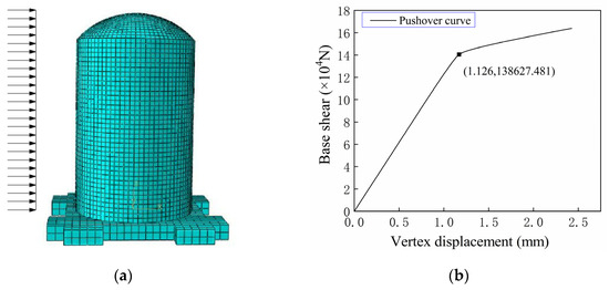 Loading mode and curve of pushover analysis. (a) Uniform loading mode; (b) Pushover curve.
