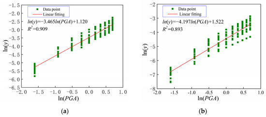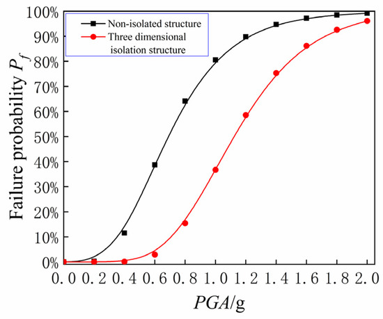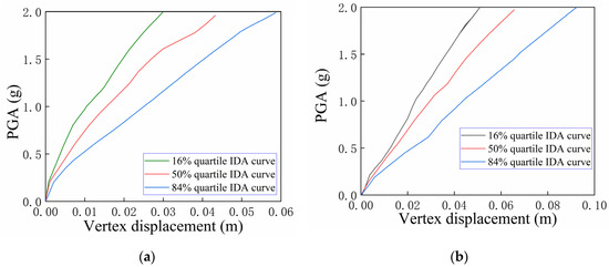 Fractional IDA curve of the non-isolated and 3D isolated nuclear containment structure. (a) Non-isolated structure; (b) Three-dimensional seismic isolation structures.