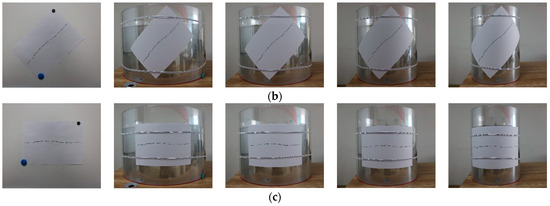 Crack image acquisition on plane, 600 mm, 500 mm, 400 mm, and 300 mm diameter cylinder surfaces: (a) images of vertical cracks; (b) images of inclined cracks; and (c) images of transverse cracks.