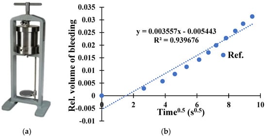 Fluid filtration test for measuring the water retention ability. (a) Test setup; (b) forced bleeding capacity obtained from the slope of the typical diagram.