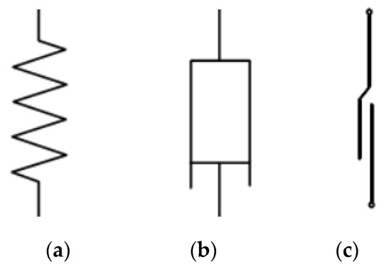 Figure 14. The fundamental rheological elements. (a) Spring element. (b) Dashpot element. (c) Friction element.