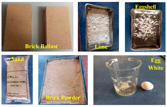 Materials used for Khorasan mortar preparation.