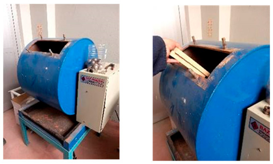 Before the mixtures were prepared, the brick ballast was pulverized through 1900 cycles in the Los Angeles abrasion device to obtain brick powder, as illustrated in Figure 3. The Los Angeles abrasion instrument is constructed from steel and has a spacious interior for sample placement. It uses balls to break down the material into finer dimensions. Each full turn of the device is considered one cycle during the experiment. Subsequently, the egg white was vigorously whisked in a porcelain bowl. All the materials were gathered in a container and thoroughly mixed until a uniform blend was achieved. The resulting mixture was then compacted using the Harvard mini compactor mold to create a cylindrical test sample, as shown in Figure 4. The compaction process consisted of 5 layers, with each layer subjected to 10 strokes. An equal amount of the sample was evenly distributed on each layer. Afterward, the samples were carefully removed from the mold using a sample extractor. The diameters and heights of the extracted samples were measured using a caliper, resulting in mean diameter and height values of 33 mm and 71 mm, respectively. To ensure proper preservation, the measured samples were meticulously wrapped with stretch film. Following this, identifying labels were attached, and the samples were placed inside a desiccator, as depicted in Figure 5. The desiccators were stored in a dark and cool environment, away from direct sunlight. The primary goal of using desiccators was to prevent any loss of water content from the samples. Consequently, the samples were kept within the desiccator for the designated curing periods (1, 7, and 28 days).