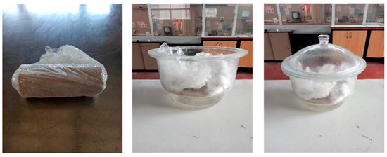 Wrapping the sample with stretch film and placing it in the desiccator.