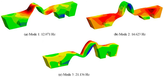 Natural frequencies of three vibration modes for the restored bridge.