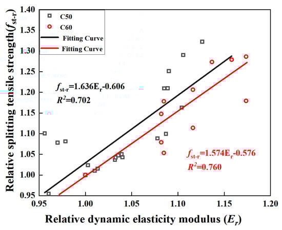 3.3.3. Splitting Tensile Strength and Relative Dynamic Elastic Modulus