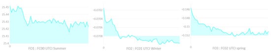 Figure 16 shows the mean values trendline. For summer, a slight but steady decline in the UTCI values is evident, indicating incremental improvements in achieving cooler conditions, which are vital for thermal comfort during the hotter months. In the winter graph, there is an initial sharp decrease in UTCI values, which then levels off, suggesting a rapid attainment of conditions more conducive to preserving warmth, before fine-tuning and stabilization of the solutions around an optimal balance. The trend for spring displays a more pronounced decline in UTCI values, consistent with the need for a substantial modification to address the season’s variable conditions. This steep improvement indicates the algorithm’s responsiveness to the spring’s challenging thermal environment and its success in significantly enhancing comfort levels. The consistent optimization across seasons validates the robustness of the applied methodologies and underscores the potential of these approaches in tailoring urban designs that cater to specific seasonal thermal demands.