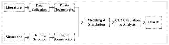 The research methodology in this article includes the work flow guidelines shown in Figure 2; the life-cycle assessment of the prefab building C-House; and its CO2 evaluation through BIM, which includes a significant amount of data collection and a literature review on prefabricated structures, carbon emissions, and digital construction. Publications, citations, and keywords were taken out of the articles and analyzed. Concurrently, this study was organized into three primary sections that demonstrate the methodology: collecting the relevant information; choosing a building—the case study of C-House in Nanjing; and using BIM to assess carbon emissions.