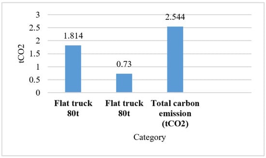 The carbon emissions calculated for the component transportation stage are further divided into two phases, i.e., flatbed truck 80 t: 1.81 tCO2; and flatbed truck 80 t: 0.73 tCO2. The total amount of carbon emissions is 2.54 tCO2, as shown in Figure 7.