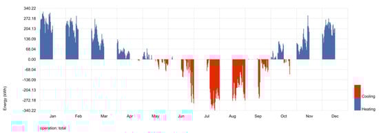 In Equation (5) [], represents the carbon emissions per unit building area during the building operation phase (kgCO2e/m), is the annual consumption of type ith energy (unit/a), is the type i energy’s carbon emission factor (tCO2/tJ), y is the design lifetime of the building, and A is the building area (m).