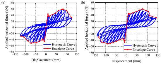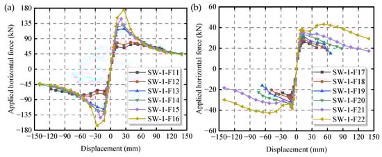 Hysteretic curves of the specimens: (a) specimen SW-1; (b) specimen SW-2.