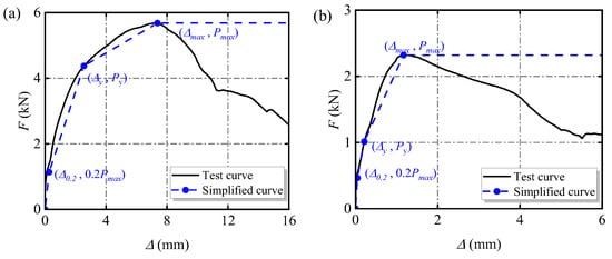 Figure 20 depicts the skeleton curves of CCS-CFS shear walls with different aspect ratios. The test and finite element analysis results of shear walls with different aspect ratios are listed in Table 9. When the ratio increased from 1.08 to 4.45, the maximum displacement and shear strength of shear walls changed by −78.84% and 54.17%, respectively.