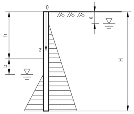 Figure 3. Calculation model of the water pressure on both sides of a retaining wall. - (4)