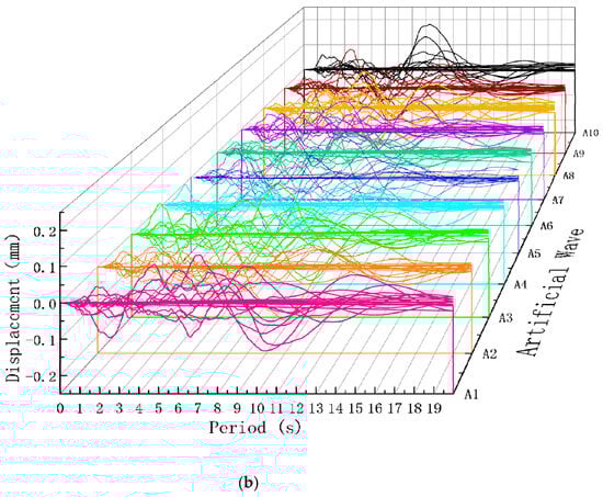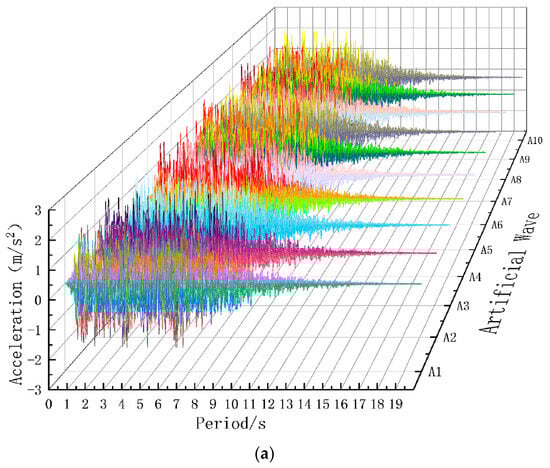 A 3D diagram of seismic waves A1~A10. (a) Acceleration time history diagram; (b) displacement time history diagram.