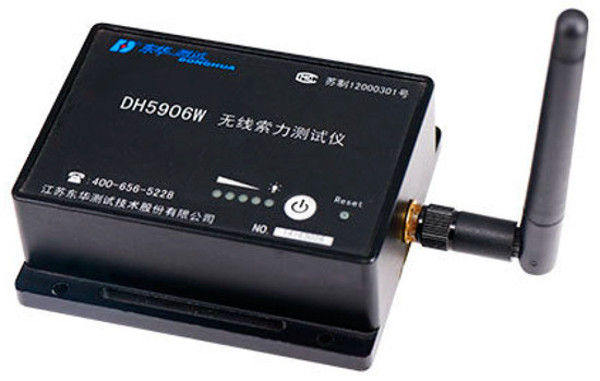 In the measurement experiment, the cable length, line density, outer diameter, and elastic modulus were obtained from construction drawings. The frequency of the cable was measured using a DH5906W Wi-Fi cable tension test instrument combined with a DHDAS dynamic signal acquisition and analysis system. At the same time, a hydraulic jack was used to measure the accurate cable tension of the cable. The Wi-Fi cable tension test instrument is shown in Figure 8.
