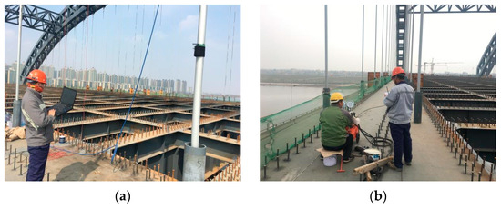 - Wang, J. Vibration Method Measurement for Cable Tension of Arch Bridge. Master’s Thesis, Harbin Institute of Technology, Harbin, China, 2012. [Google Scholar]