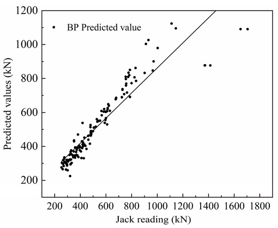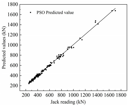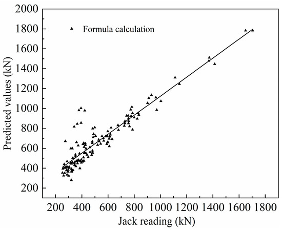 To examine the fitting effectiveness, the results obtained from the two models were compared with the results obtained from Equation (1) and the actual jack readings. Additionally, Figure 12, Figure 13 and Figure 14 were constructed.
