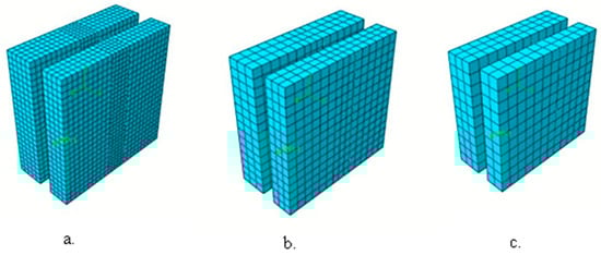 Mesh density of concrete layer: (a) 20mm, (b) 30mm, (c) 40mm.
