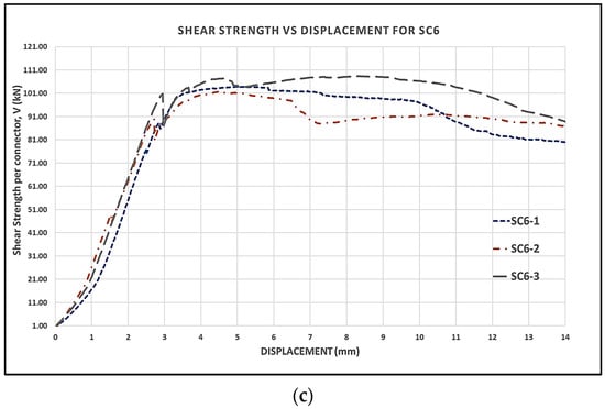 Shear strength versus displacement: (a) SC3; (b) SC4; (c) SC6.