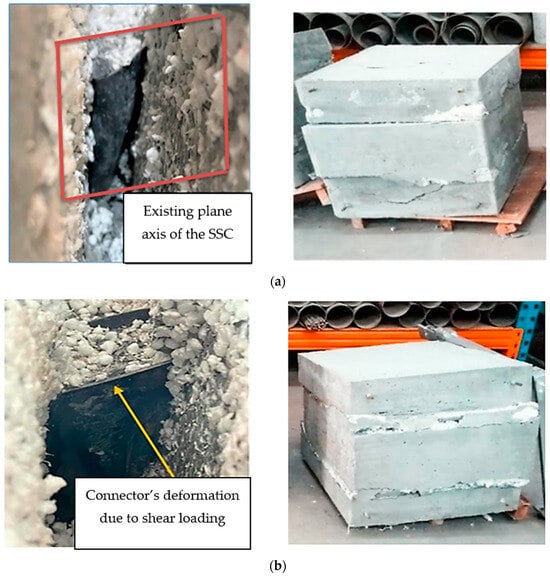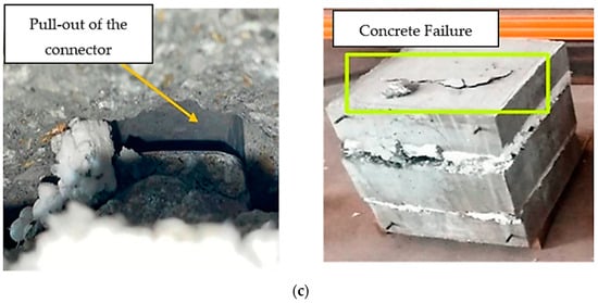 In contrast, when the width of the connector is increased, it amplifies the magnitude of the forces transmitted from the connector to the concrete while improving the pull-out strength of the connector–concrete interface. This, in turn, inhibits any incremental incidence of tensile cracking within the concrete. As evidenced by Figure 20a, the shear force progressively amplifies with an increasing total area due to the augmentation of the SSC’s width.