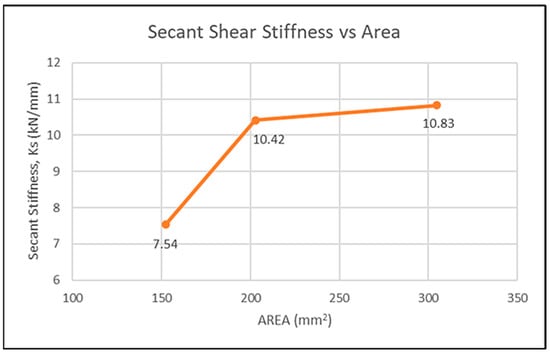 Experimental secant shear stiffness versus the cross-sectional area of the SSC.