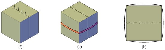 Subsequently, the separate specimens are securely bound together using a worm hose clamp. This stage includes the initial observation, during which points of interest on the surface are identified and marked for continuous monitoring throughout the experiment (g). Finally, the specimen is prepared for both visual observations and permeability tests. It is important to note that the lateral openings must be sealed to ensure the accuracy of these tests (h).