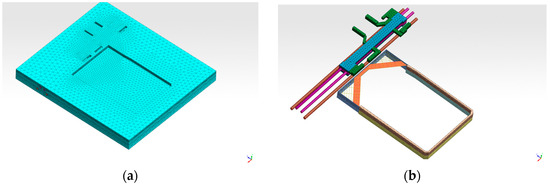 Three-dimensional finite element analysis model. (a) Three-dimensional finite element model; (b) relationship between tunnel supporting structure and tunnel.