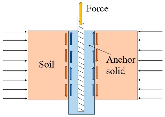 Anchor support is widely used in foundation pit engineering, slope engineering, and underground engineering, and the anchoring performance of anchors affects the stability and safety of engineering construction and the completed structures. Therefore, the shear deformation characteristics of an anchor-soil interface have remained a topic of study. Experts and scholars have carried out many experimental and theoretical studies. Zhuo Yang and Siu Chun Michael Ho et al. [1,2] directly monitored the internal force of anchors through intelligent monitoring to describe the stress distribution of anchors. Chase Barnard and Cherdsak Suksiripattanapong et al. [3,4] evaluated the mechanical properties of an anchor-soil interface in detail through on-site anchor pull-out testing. Aoxue Chen et al. [5,6,7,8] explored the anchor support system of a deep foundation pit and obtained the force and deformation characteristics of the anchors in the foundation pit, pointing out that strengthening the shallow support of the foundation pit can effectively improve the safety reserve. Weizhi Su [9] conducted anchor pull-out tests with two different model boxes and proposed an exponential anchor-soil interface model. Laura Blanco Martín [10] established a trilinear bond−slip prediction model from measured curves. M. Ghadimi [11] proposed a new analytical solution for predicting the displacement of fully grouted anchors, and the analytical method results agreed well with the numerical method results. Xiao Hua Xi [12] derived a shear stress model and an axial force model of full-length bonded anchors based on the Boussinesq formula, starting from the surrounding rock of the tunnel. Zhu Zheng-de et al. [13] analysed the distribution of shear stresses in full-length grouted paving rods by considering the shear characteristics of the interface between the slurry and the contact interface. Chen et al. [14] proposed a full-process shear displacement curve by independently developing an anchor-soil interface friction tester.