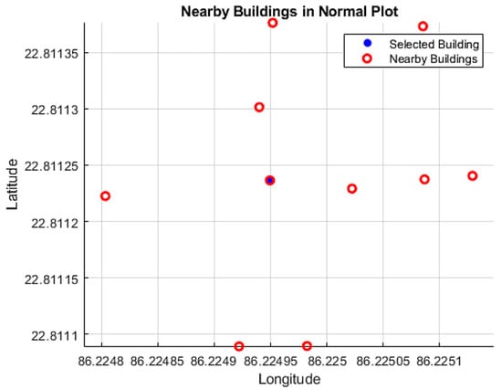Selection of nearby buildings for shadow castings in the normal plot.