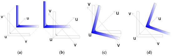 Schematic diagram of buckling modes []. (a) Flexural buckling along axis-uu; (b) flexural buckling along axis-vv; (c) torsional buckling; (d) flexural–torsional buckling.